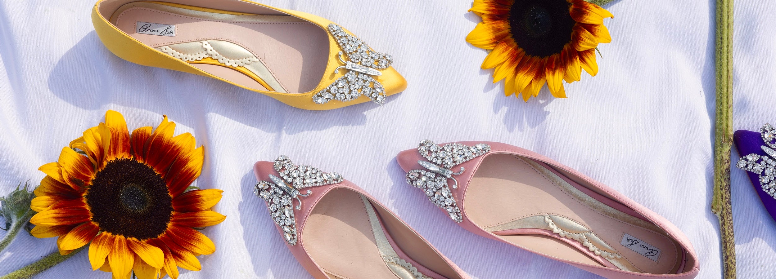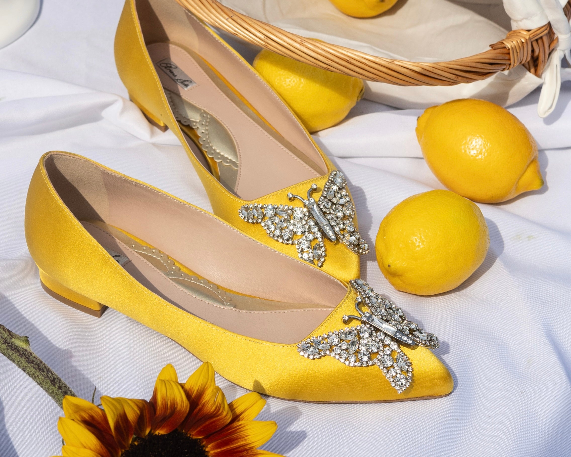 Ava Open Toe Butterfly Low Heels Ivory Satin